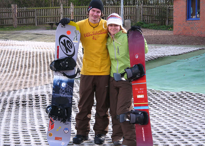 If you are already of the basic recreational standard of being able to do linked turns, control your speed and direction and use our button lift then you can use our slope for recreational snowboarding!